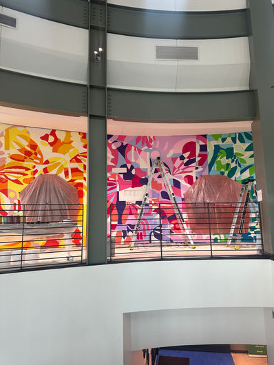 The institution wanted to bring more life to campus, highlight the student body's energy for innovation, and strengthen its mission of enriching society with breakthrough approaches to education and translational research in the life sciences. Through a combination of art and science, we have done exactly that. As you will see in the photos featured above, the piece entitled 'Translational Imagination' includes a range of vibrant colors, abstract scientific symbols, DNA helicases, blood platelets, nature designs from the local surrounding area, and many other hidden details highlighting the vivacity, scientific passions, and creative spirit of the 2021 graduating class. I’m proud to have been selected to craft a 10ft x 13ft custom one-of-a-kind indoor wall mural to celebrate the undeniable dynamic between art and science in the Oasis Residential space.